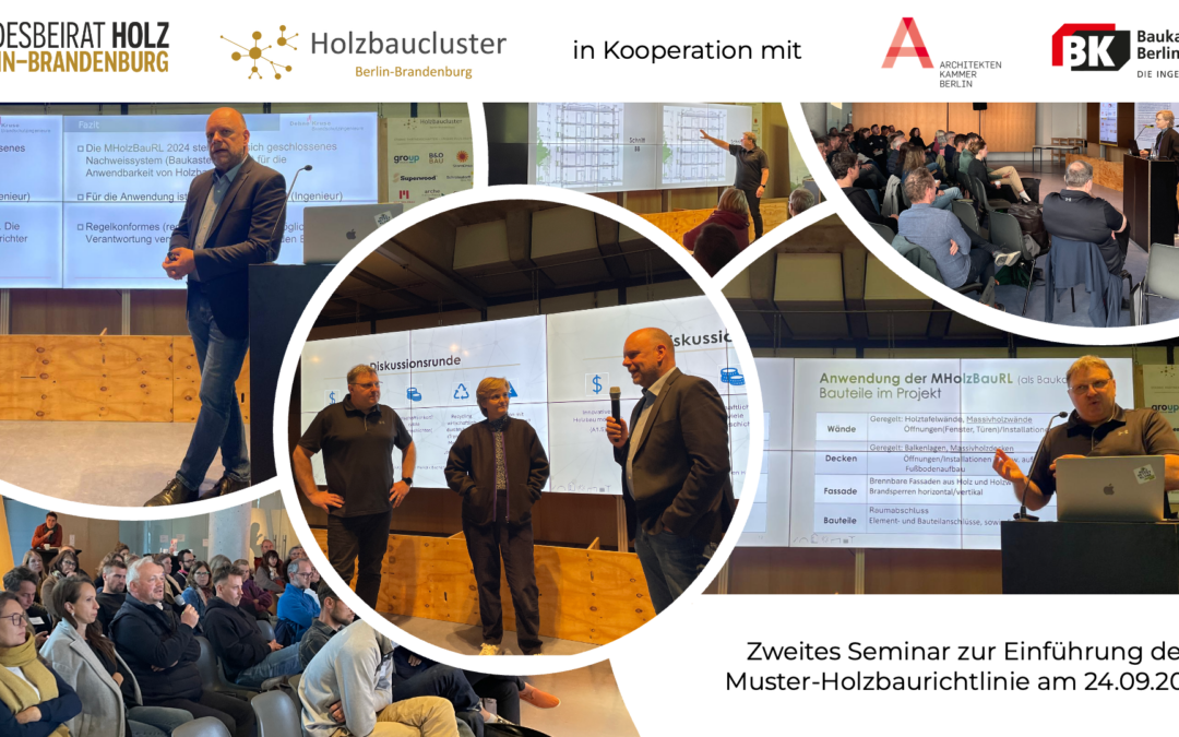 Mit der Einführung der MHolzBauRL in Berlin seit dem 2. Mai 2025 und seit August 2025 auch in Brandenburg verfügt die Hauptstadtregion über eine deutlich bessere rechtliche Grundlage für den mehrgeschossigen Holzbau. Entscheidend ist jetzt, dass diese Spielräume in der Praxis sicher und zügig genutzt werden können. Genau dabei begleiten der Landesbeirat Holz Berlin-Brandenburg und das Holzbaucluster Berlin-Brandenburg den Holzbau in der Region: mit Wissenstransfer, Netzwerkformaten und dem systematischen Austausch zwischen Planung, Baupraxis und Verwaltung.